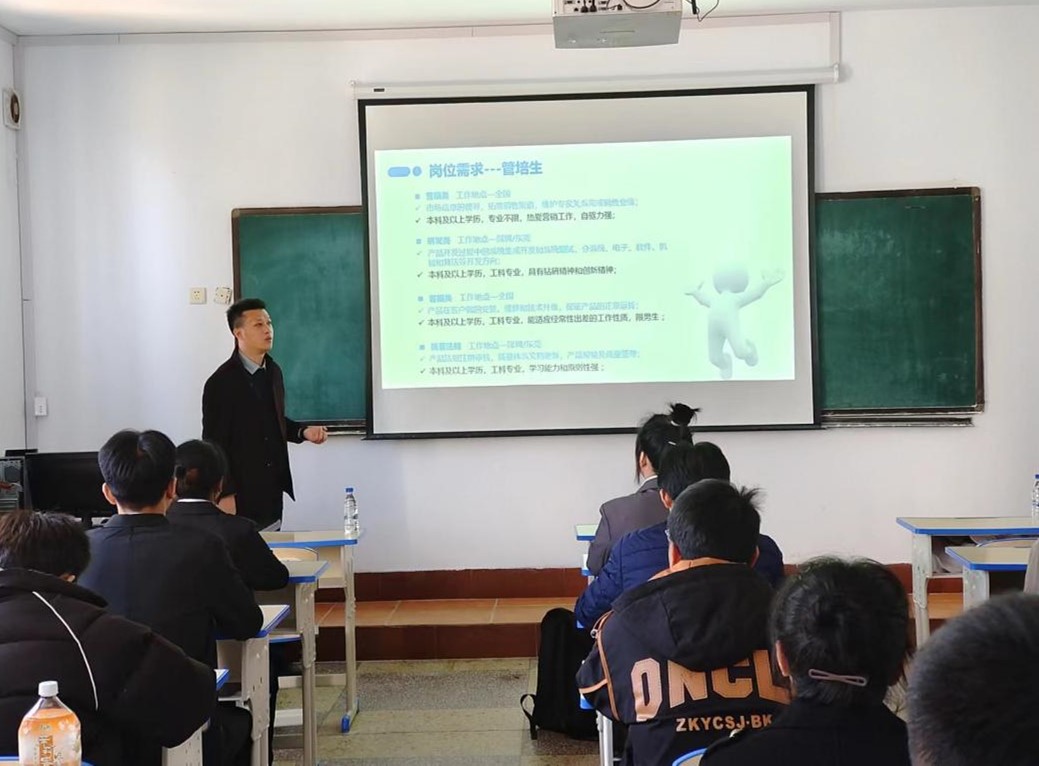 首先,深圳安科人力资源部吴红军总经理和HR刘琼丽在自习室分别从企业文化、产品介绍、岗位需求和人才培养等多方面进行宣讲,并耐心解答了毕业生们的疑问,增进同学们对企业了解的同时极大提高了现场学生应聘的积极性。