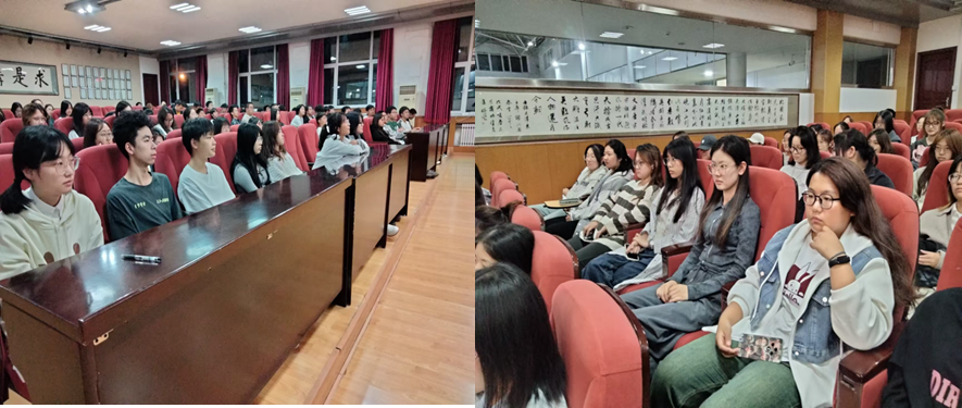 武艳从学科建设入手,详细介绍了学院科研平台。她讲,学院搭建的科研平台犹如坚实的基石,为师生们提供了广阔的创新空间。先进的实验室设备、丰富的数据库资源以及开放的学术交流环境,吸引着众多有志之士投身科研事业。学院的研究方向多元且前沿,涵盖了多个领域,为同学们展现了一幅丰富多彩的学术画卷。