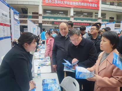 在生命科学学院领导班子的陪同下,学校副校长朱晓冬来到了招聘现场。先后来到在南京普爱医疗设备股份有限公司、黑龙江九州通医药有限公司、黑龙江九州通技术服务有限公司的展位前,与用人单位代表深入交流,详细了解企业发展现状、岗位具体要求以及未来晋升空间。特别是与普爱医疗总经理助理关方就推动校企合作,提升实习就业一体化效能,怎样施行“订单式”人才培养机制等方面交换了意见,对学院“精英、精准”人才培养质量的提升提供新的思路。在招聘现场,朱晓冬与生命科学学院学生亲切交谈,了解学生求职意向后,朱晓冬围绕就业创业政策、社保缴纳细则、劳动权益保护等学生关切的问题进行解读,并指导学生应该如何与企业交流提出个人需求,建议学生要树立正确的就业观,了解掌握国家大学生就业政策,及时就业。