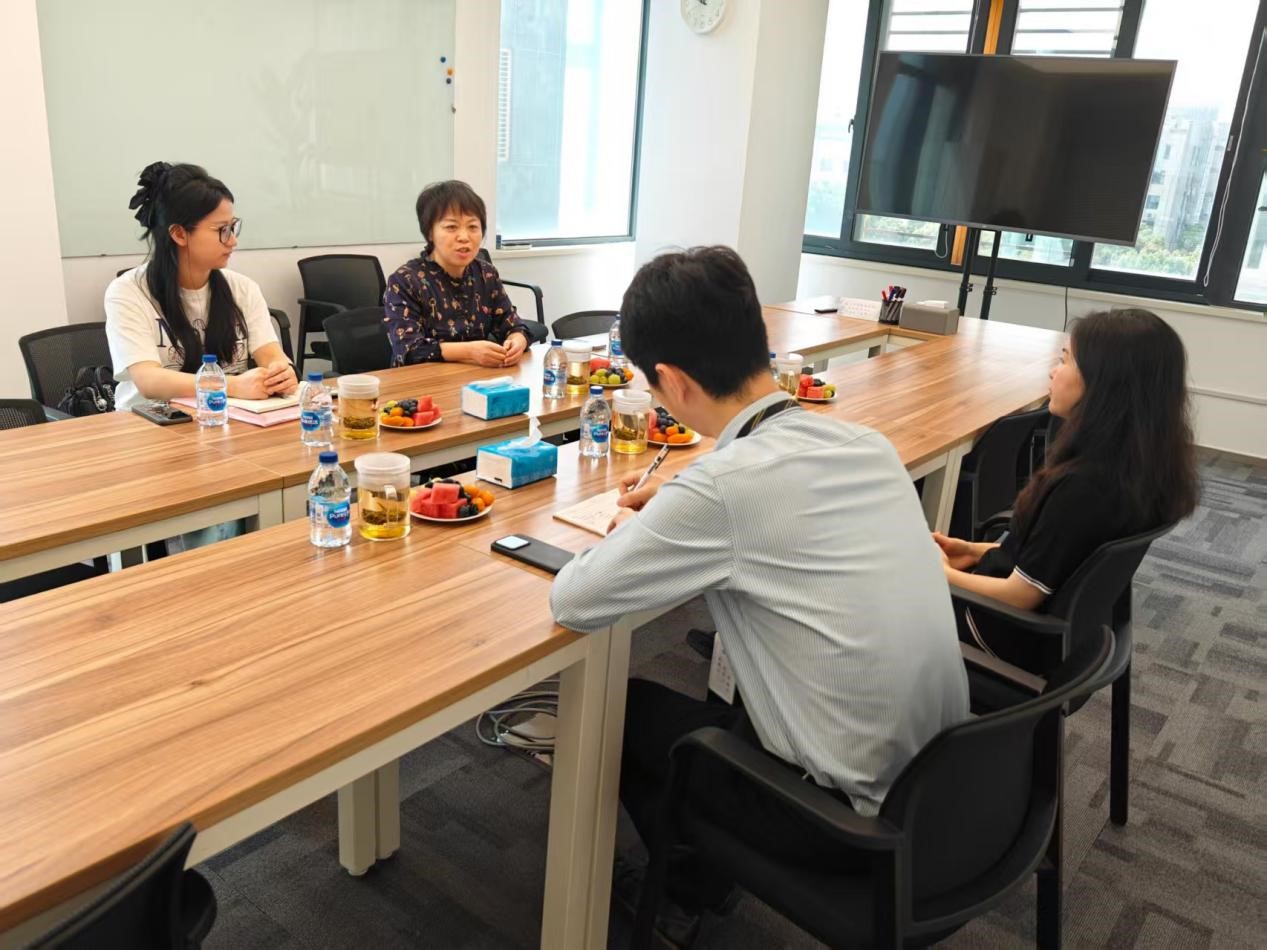 参观结束后,袁晓环一行与公司人力资源负责人展开座谈交流。校企双方围绕校企协同育人机制,系统分享了各自单位的发展历程、战略规划、人才队伍建设情况及岗位需求。交流中,双方重点聚焦“实习期间项目制考核结果与就业录用标准衔接”机制,展开深入研讨。经过充分交流,双方达成共识,共同构建起“岗位需求精准对接—实习任务定向设计—考核标准联合制定—就业通道优先开通”的全流程合作框架,为实现人才培养与企业需求无缝对接、推动校企深度融合奠定了坚实基础。