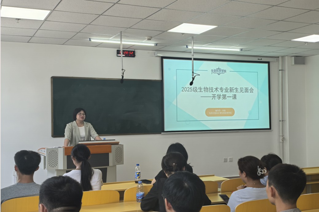 秋光为序,筑梦启航。值此金秋开学季,为助力2025级新生顺利开启大学生活、科学规划职业生涯,生命科学学院于8月30日下午在公卫实训楼202教室召开2025级生物技术专业新生见面会。会议由辅导员许晶主持,全体2025级生物技术专业新生及家长共同参加。