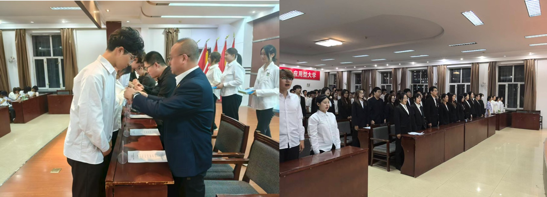 在舒缓悠扬的音乐声中,老师们面带微笑,亲手为新生代表佩戴上牡丹江医科大学校徽,并送上精心准备的礼物。当小巧而意义非凡的校徽别在胸前的那一刻,新生们的眼中满是自豪与憧憬,这一枚枚校徽如同希望的火种,将在他们的青春岁月里熠熠生辉,引领他们开启崭新的人生篇章。随后,全体新生庄严宣誓,铿锵有力的誓言在会场中回荡,展现出他们对未来学习生活的坚定信念与无畏勇气。