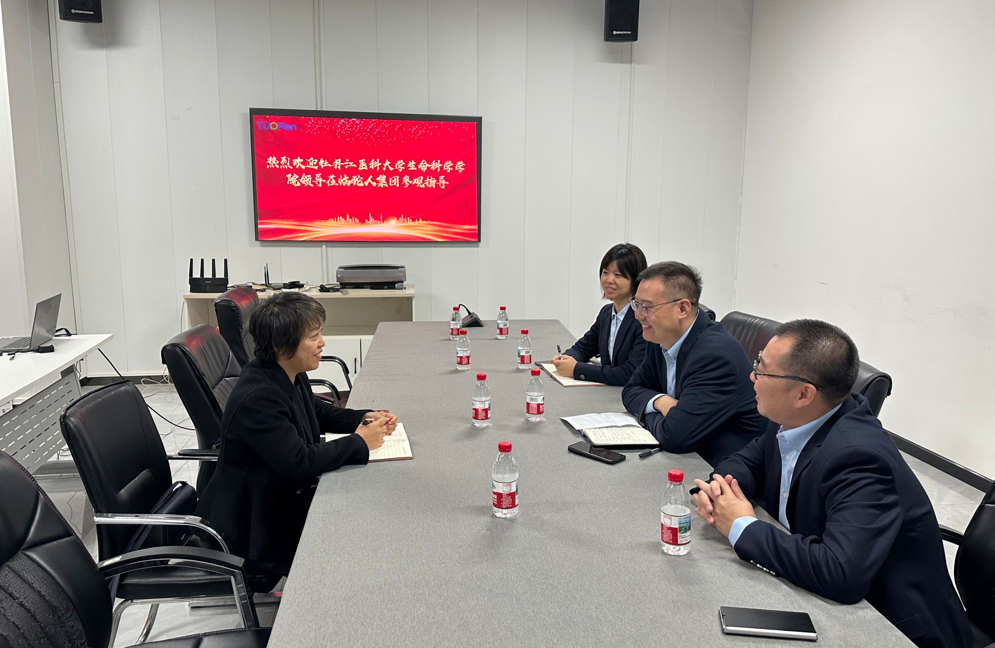 袁晓环深入驼人集团实地考察,并与集团人力资源管理中心总经理魏世星、招聘经理赵青、黑龙江省地区经理杨洪亮等负责人开展座谈。袁晓环向企业介绍学院的发展历程、师资队伍、人才培养、专业特点和学生的实习就业方向,并表示希望通过此次走访交流,进一步拓宽双方合作领域,共建实习基地,不断提高人才培养与企业需求契合度,搭建好校企共建的合作平台,共同推进产教研融合新发展。驼人集团负责人系统介绍企业发展历程、业务布局及人才需求,并强调集团始终重视人才培养与科技创新,期待通过与高校的深度合作,为企业注入新生活力,同时也为学生提供优质的实践平台。经过充分沟通,双方在人才培养、实习就业等方面达成共识,并正式签订实习合作协议。