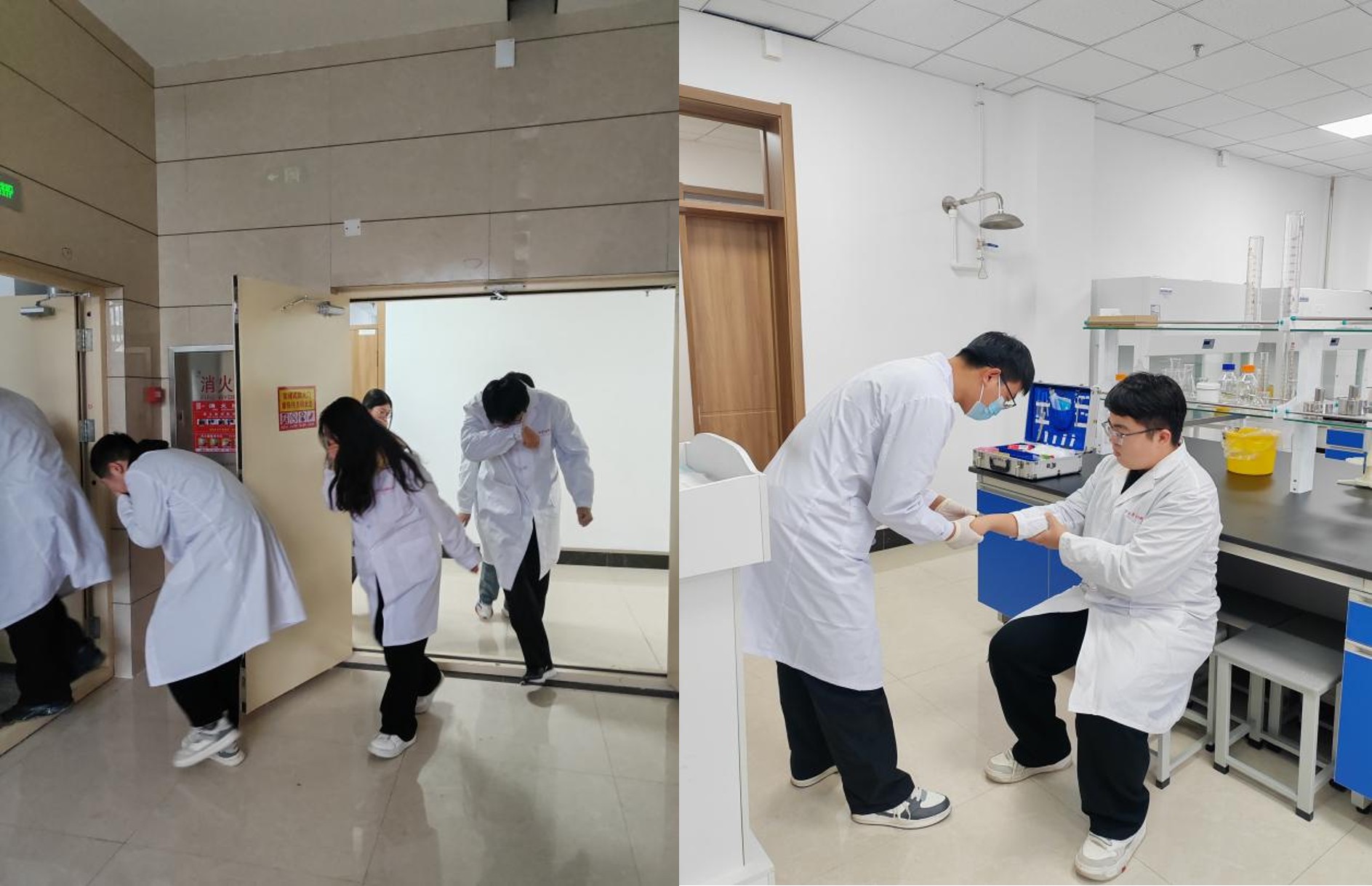 为进一步增强师生实验室安全责任意识,提升实验室安全风险防范意识和应急处置能力,深入贯彻落实《牡丹江医科大学教学通知》(教通〔2025〕76号)《关于开展2025年度实验室安全问题整改的通知》精神,11月27日下午,生命科学学院联合学校保卫处、医务处组织开展实验室化学品泄漏应急演练,切实保障师生人身安全,有效提升实验室应对突发安全事故的能力。实验教学中心全体教师及学院2023、2024级本科生参与演练。