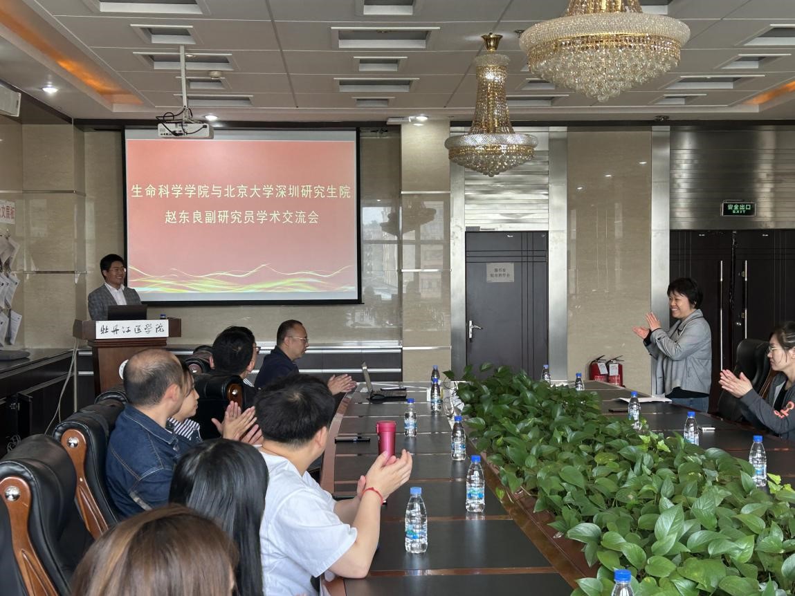 为了加强生物医学工程专业学科建设,促进医工交叉融合,5月26日上午,生命科学学院特邀深圳湾实验室启航学者,北京大学深圳研究生院副研究员赵东良博士在我校科技楼6楼会议室作专题学术报告。生命科学学院全体教师、研究生出席报告会,学术报告会由袁晓环院长主持。