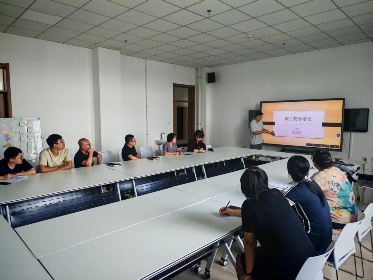 为锤炼青年教师教学基本功、优化课程教学质量,开学前,生命科学学院在八楼会议室组织新课试讲活动。本次试讲由化学生物学教研室王佳华老师主讲《微生物学绪论》,学院院长袁晓环,副院长孙展鹏、武艳、王志龙,各教研室负责人及青年教师出席并参与点评。