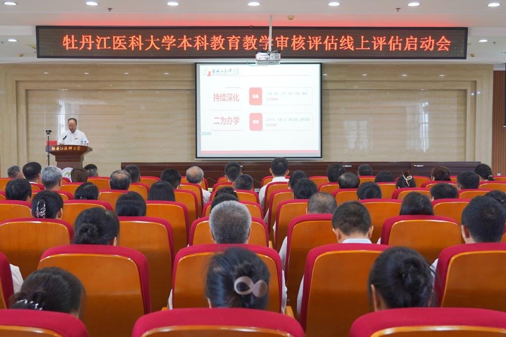 黑龙江省教育厅总督学刘兆国在会上讲话。他指出,高校审核评估是深化高等教育改革、推动高等教育内涵发展的重要抓手,对确保人才培养中心地位和本科教育教学核心地位,引导高校内涵发展、特色发展、创新发展,全面提升高等教育服务黑龙江全面振兴发展的能力具有十分重要的意义。他对此次评估工作提出三点期待:一是恳请专家悉心诊断评价,精准把脉开方。全面深入对学校本科教育工作进行审核,帮助学校进一步梳理典型成果、形成问题清单、分析问题症结、明确整改方向;二是期待学校把握评估机遇,实现发展跃升。审核评估的评建期恰逢学校更名后的建设期,学校要以主动的工作态度、饱满的工作热情、务实的工作作风、周到的工作保障,集全校之智交流、展示好学校更名后的育人成果;三是期望评估工作规范实施,确保评估质量。期望审核评估专家组、牡丹江医科大学、教育厅督导室共同遵守评估相关规定,贯彻落实国家评估政策文件要求,使评估程序、评估标准、评估效用能够得到有效保障,推动评估工作持续健康发展。