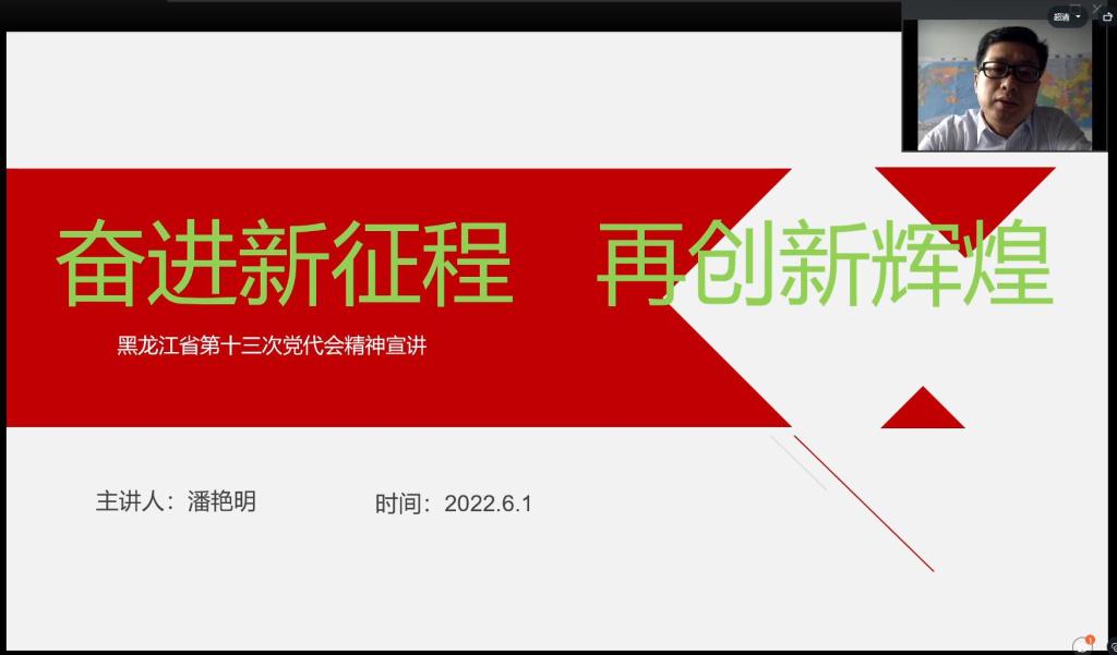 为深入学习宣传贯彻省第十三次党代会精神,推进机关“能力作风建设年”活动走细走实,2022年6月1日下午,医学影像学院党委书记潘艳明以“奋进新征程 再创新辉煌”为题面向医学影像学院全体教职工、学生第四党支部全体党员通过线上宣讲方式进行了学习宣传贯彻省十三次党代会精神专题党课。