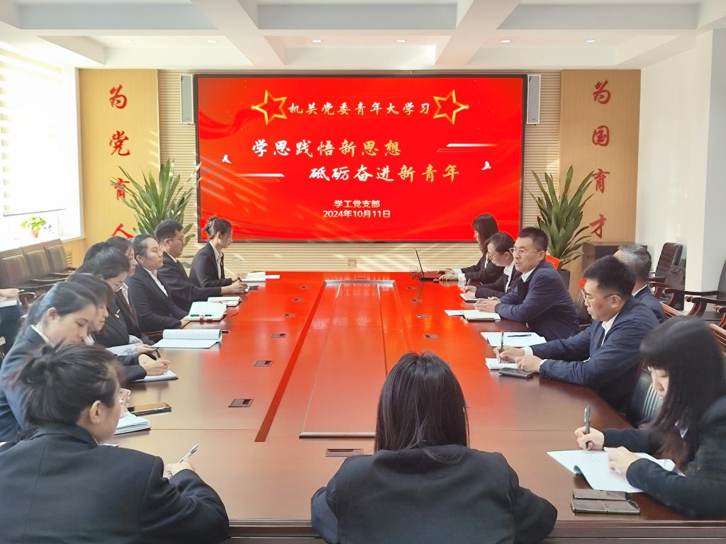 青年兴则国家兴,青年强则国家强。为巩固拓展学习贯彻习近平新时代中国特色社会主义思想主题教育成果,结合“强国复兴有我”群众性主题宣传教育活动,落实学校机关党委关于开展“青年大学习”的活动要求,不断加强机关青年党员干部思想政治建设,提高理论素养和政治觉悟,深化对习近平新时代中国特色社会主义思想和习近平事迹、精神的理解和认识,教育引导广大青年干部用习近平新时代中国特色社会主义思想铸魂育人,牢固树立对马克思主义的信仰、对中国特色社会主义的信念、对中华民族伟大复兴的中国梦的信心,机关党委学工党支部于2024年10月11日下午组织开展“学思践悟新思想,砥砺奋进新青年”主题青年大学习活动,支部所属部门全体同志共同参加了此次活动。